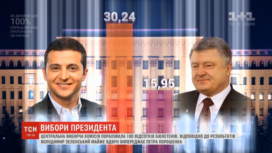 И теперь там обещают до конца недели объявить окончательные результаты волеизъявления. Оригиналов протоколов от окружных комиссий приняли уже более половины. Результаты голосования таковы - за Владимира Зеленского - более 30% избирателей, за Петра Порошенко - не менее 16%. И именно эти двое будут бороться за главный пост страны во втором туре 21 апреля.