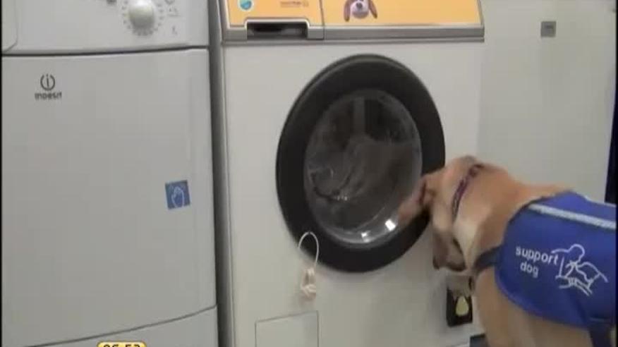 Собаки, которые помогают людям с ограниченными возможностями, могут не только забрасывать вещи в стиральную машину, но и включать ее самостоятельно.