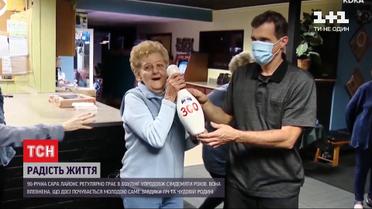 96 лет - боулинга не помеха. Жительница американского Питтсбурга упорно сбивает кегли в одном из местных клубов. Сара Лайонс бросает всегда правой. Когда удар получается удачным, то подпрыгивает и пританцовывает. Она регулярно играет уже почти 70 лет и прекращать не собирается. В ноябре миссис Лайонс исполнится 97.