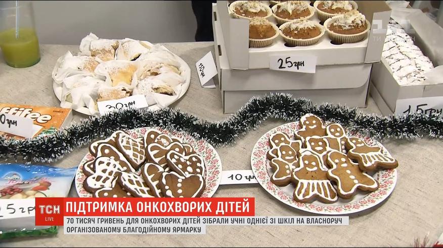 70 тысяч гривен для онкобольных детей собрали ученики одной из столичных школ. Ярмарку устроили сами дети: пекли и продавали имбирное печенье, сладкую вату, придумывали предсказания и даже делали прически и макияж. Учителя благотворительную инициативу всячески поощряли.