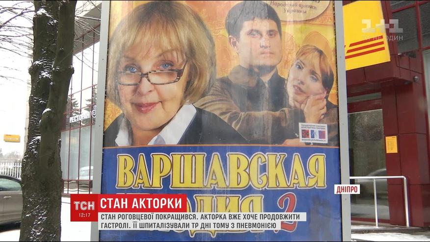 Медики Днепропетровской больницы Мечникова говорят, что состояние женщины удовлетворительное. Хотя Роговцева уже хочет продолжить гастроли, врачи ее не отпускают и будут наблюдать за ее состоянием здоровья в стационаре. Народную артистку Украины с пневмонией три дня назад срочно госпитализировали после спектакля.