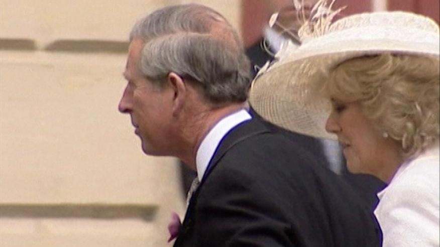 Принц Уэльский и Камилла Камилла Паркер-Боулз поженились 9 апреля 2005 года. На видео они запечатлены, выходя из автомобиля, когда приехали на гражданскую церемонию росписи в Виндзоре.