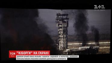 На допремьерный показ фильма "Киборги" приехал режиссер Ахтем Сеитаблаев и исполнитель главной роли Вячеслав Довженко. На Черниговщине отсняли около 40% эпизодов ленты. Батальные сцены танковых боев поставили на полигоне в Гончаровском. Главную декорацию - сам Донецкий терминал, пришлось дважды строить и разрушать для съемок под Киевом и Черниговом.
