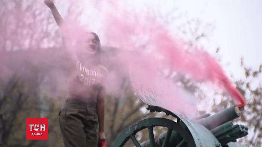 Активистка FEMEN обнажилась на памятнике-пушке
