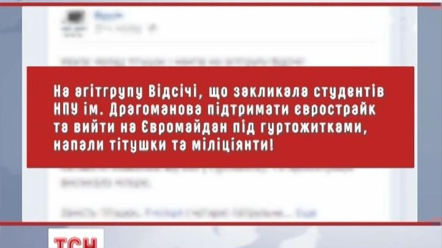 Студенты жалуются, они до сих пор приходят в себя после их визита. Незваные гости, говорят очевидцы происшествия, вели себя агрессивно - бегали этажами, кричали в дверь и применяли ненормативную лексику, призывая идти на Майдан.