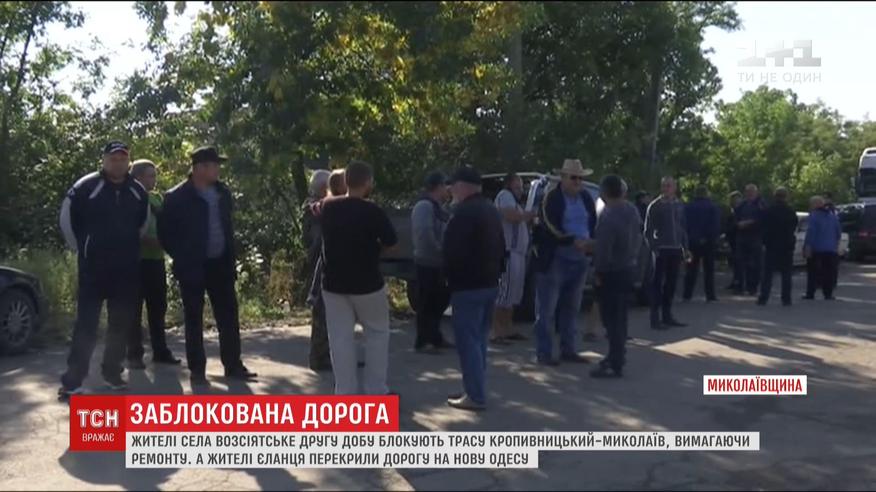 Активисты вторые сутки блокируют трассу "Кропивницкий-Николаев", требуя ремонта