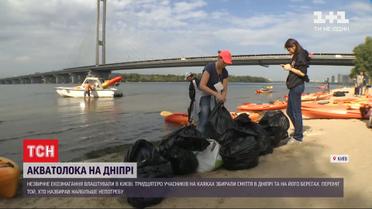 Акватолока на каяках: в Киеве на скорость собирали мусор в Днепре и на его берегах