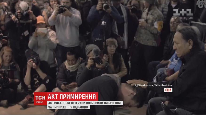 Бывшие военные пришли к старейшинам резервации Стэндинг Рок и извинились за преступления, которые приезжие колонизаторы делали против коренного населения континентов. Ветераны, склонив головы и встав на колени, вспомнили битвы против индейцев, нарушение подписанных с ними соглашений, добычу полезных ископаемых на их землях и изображения американских президентов на священных для индейцев скалах.