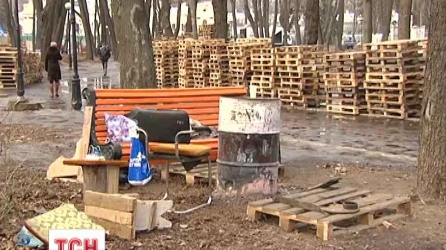 Последствия 20-дневного стояния тысяч человек ликвидируют с вчера. Конца работе пока не видно, хотя протестующие, как и обещали, немного за собой территорию почистили.
