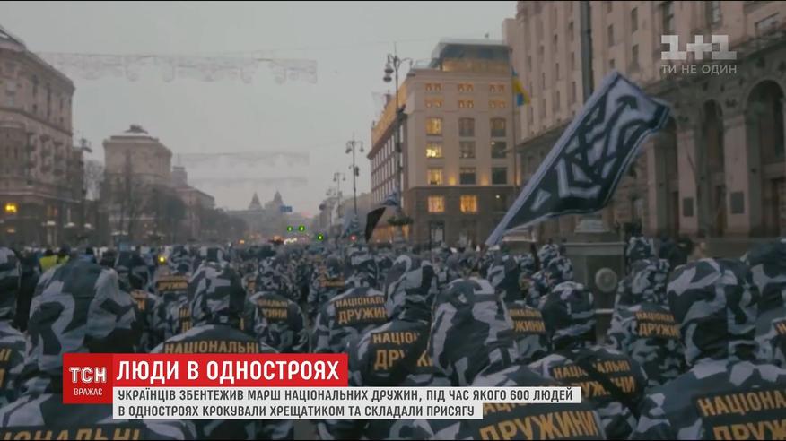 "Монополия на насилие есть только у государства", - заметил министр внутренних дел Аваков. Национальные дружины в воскресенье удивили, а порой и напугали прохожих демонстрацией своей массовости. Тогда шестьсот мужчин демонстративно на площади вышли принести присягу на верность.