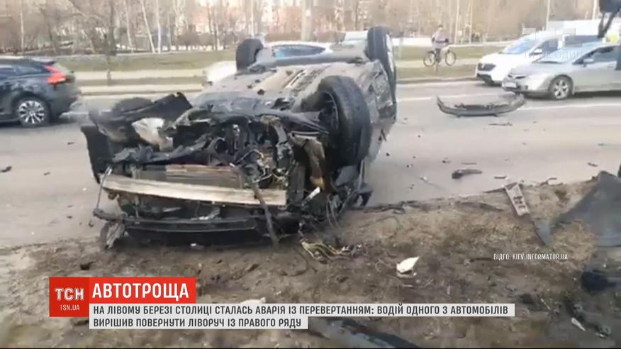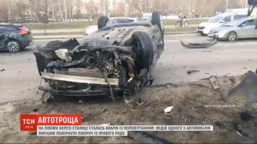 На проспекте Шухевича водитель одного из автомобилей решил со второго ряда повернуть налево, на разворот, через два других ряда. Это все зафиксировал видеорегистратор в автомобиле рядом. Водитель авто ехал в крайней левой полосе, уйти от удара в сторону не смог, машина задела мостовую и оказалась перевернутой. Больше - в разделе Авто
