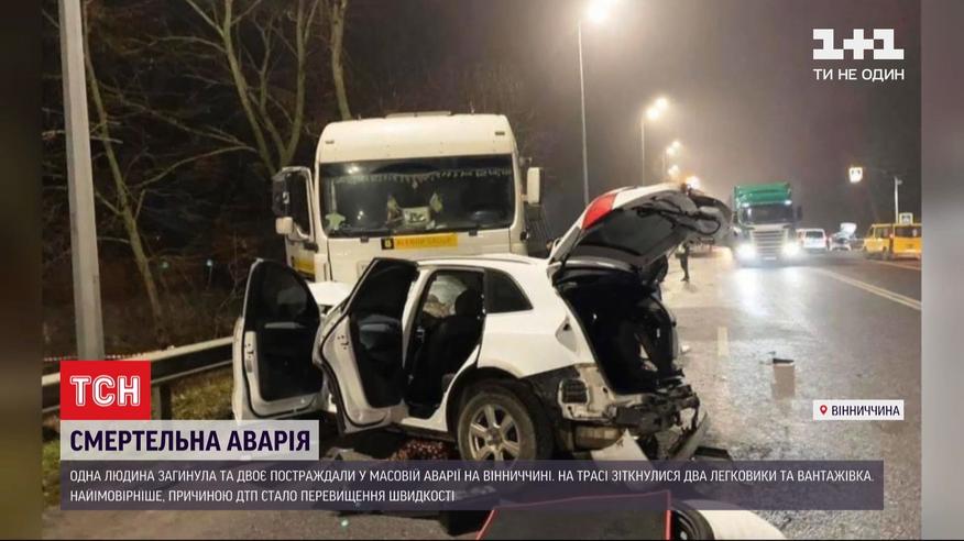 Один погибший и двое травмированных в массовом ДТП в Винницкой области. На оживленной трассе возле села Писаревка столкнулись две легковушки и грузовик. Один из автомобилей на бешеной скорости протаранил другой легковой автомобиль. Удар был такой силы, что внедорожник отбросило на встречную, где в него врезался грузовик с прицепом. Обломки были разбросаны на несколько десятков метров, а движение по трассе несколько часов было парализовано. Травмировались оба водителя легковушек, а пассажира одной из машин с искореженного металла доставали спасатели. Мужчина скончался в карете скорой по дороге в больницу.