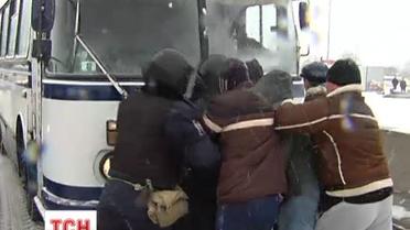 Пикетчики падали под колеса и часть автобусов им удалось задержать. Остальные, по разным данным, от 10 до 15 машин, выехали на трассу в сторону Киева.