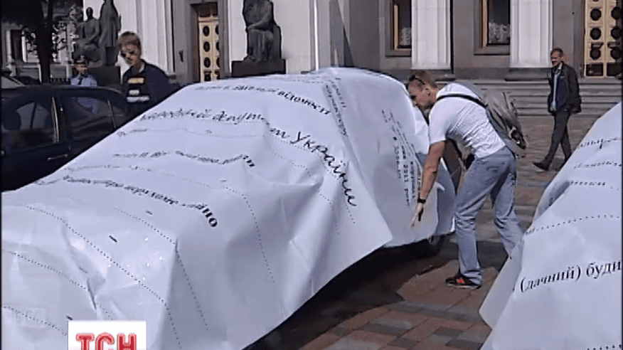 Чтобы заставить депутатов принять закон об открытом реестре собственности чиновников. Документ под номером 2423 лежит на рассмотрении в Верховной Раде. В случае принятия парламентом, каждый украинец сможет увидеть, какая дача, квартира или машина принадлежит судье, прокурору, депутату.