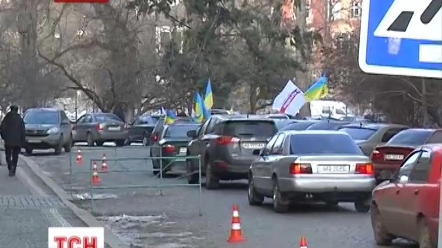 Несколько десятков водителей, нажимая на клаксоны, курсировали вокруг облгосадминистрации в Ужгороде.