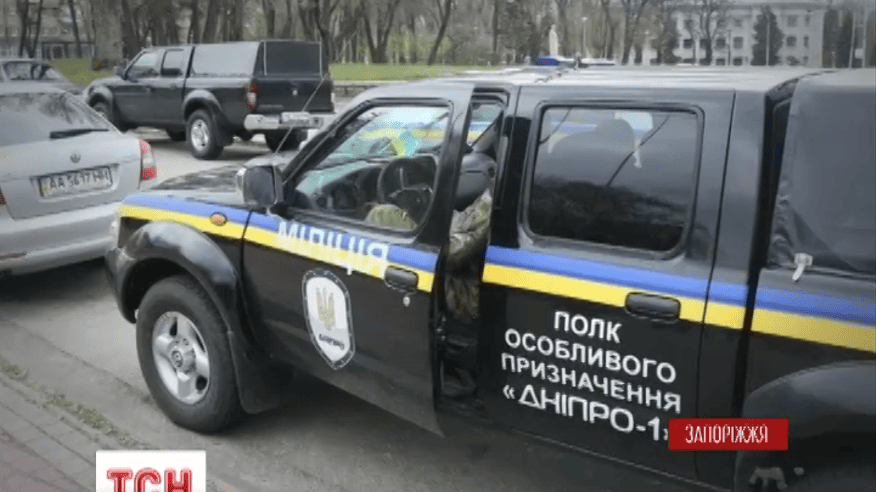 Сегодня несколько бойцов приехали в Запорожье, где должно было состояться собрание акционеров местного Облэнерго. До этого в милицию поступил звонок с информацией о заминировании помещения, где должны были проводить собрания.