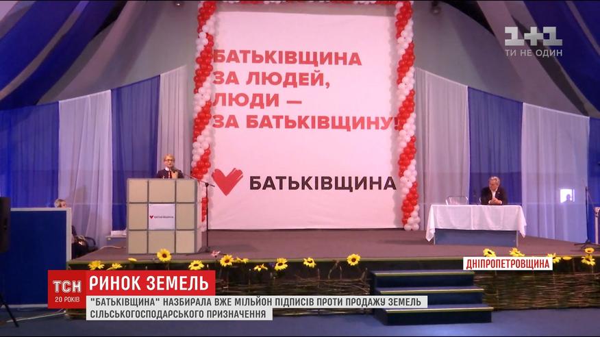 Первый миллион уже есть. Об этом заявила лидер политсилы Юлия Тимошенко во время агрофорума на Днепропетровщине. Члены заседания считают, что продажа земель приведет к уничтожению сел и черноземов за бесценок. Однако, провести референдум пока невозможно из-за решения суда - признает Тимошенко.