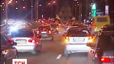 Около сотни столичных автомобилистов попытались заглянуть в гости к загородной резиденции главы государства. Только митингующие вышли из машин, Беркут плотным щитом заблокировал целую улицу.