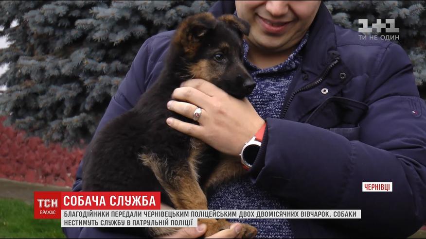Благотворители передали черновицким копам щенков немецких овчарок