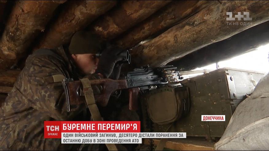 Один военный погиб, десять получили ранения и еще восемь бойцов контузило во время боев на Светлодарской дуге. Такую официальную статистику потерь в рядах наших защитников подают в штабе АТО. Сегодня после полудня, после мощного минометного обстрела, три штурмовые группы врага атаковали опорники ВСУ. После боя они отступили.