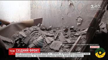 Один украинский военный погиб, 5 - ранены. За сутки в штабе АТО насчитали 57 вражеских обстрелов. Прятаться в подвалах пришлось и жителям Ольгинки - села вблизи Волновахи. Во время обстрела повреждены восемь домов. Один - полностью разрушен.