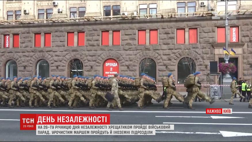 26-й день рождения сегодня празднует Украина. По случаю праздника на Крещатике состоится военный парад. Рядом с украинскими подразделениями торжественным маршем пройдут и иностранные военные.