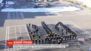 Более ста курсантов университета МВД создали живой трезуб ко Дню Государственного Герба