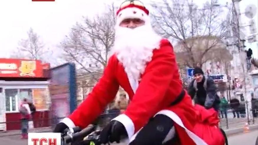 Более трехсот Дедов Морозов и Снегурочек устроили новогодний велопробег в Симферополе