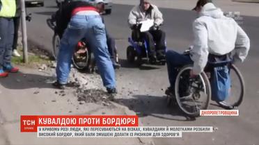 "Бордюр не дороже уважения": люди на колясках с молотками и кувалдами пробивали себе путь