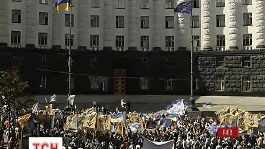 Шахтеры, железнодорожники, авиаторы и активисты "Азова" устроили протестное шествие в центре столицы. Среди основных требований митингующих - снизить коммунальные тарифы, прекратить закрывать шахты, а еще выплатить всю задолженность по заработным платам. После неудачных попыток попасть в помещение Кабмина колонна повернула в Министерство топлива и энергетики - требовать встречи с министром.