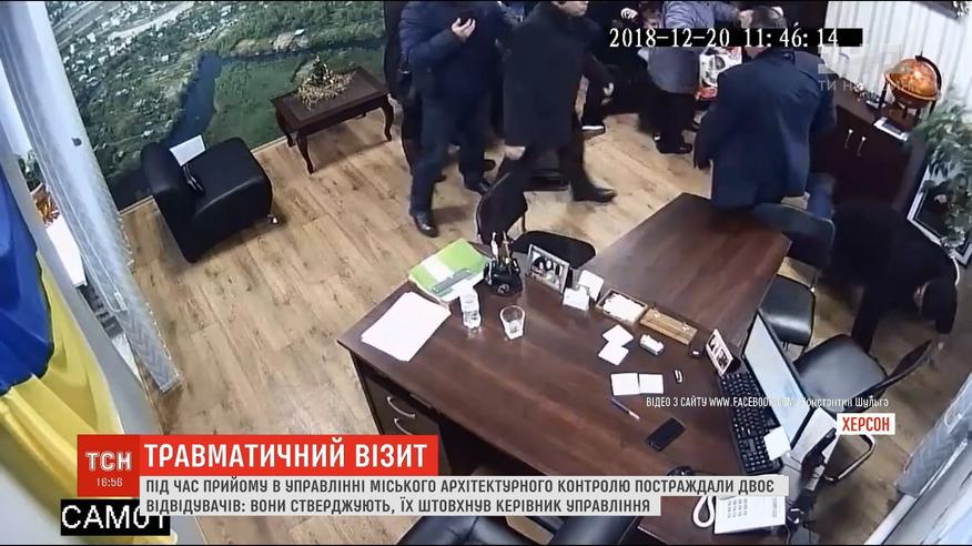 Лайки, толкотня и двое пострадавших - так в Херсоне закончился визит граждан в управление государственного архитектурного контроля. Посетители утверждают, руководитель управления начал их толкать. Тот утверждает, они сами попадали и травмировались. Как все было - снимали активисты.