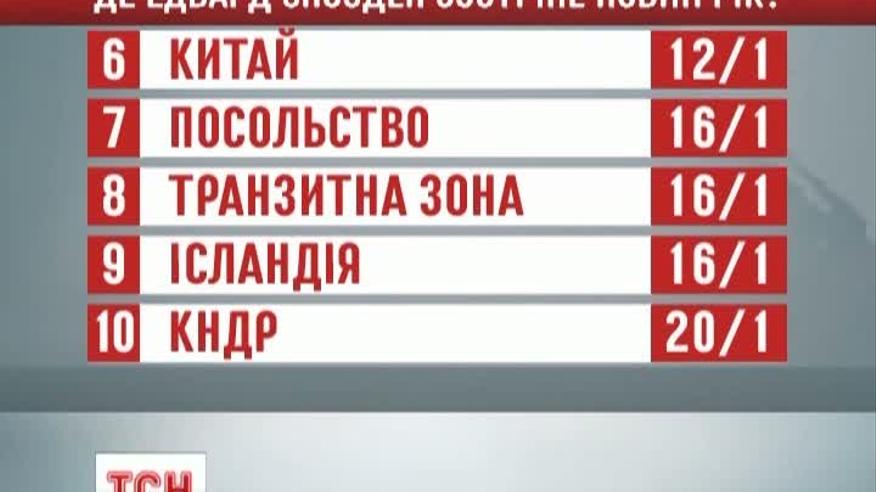 Сейчас он якобы бродит московским аэропортом "Шереметьево" и выйти оттуда не может, ведь нет российской визы. По мнению букмекеров, вероятнее всего, что Сноуден отправится на Кубу.