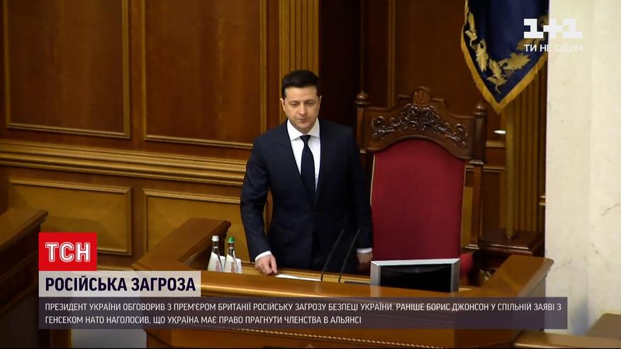 Российскую угрозу безопасности Украины обсудили сразу несколько мировых лидеров. О войсках Москвы на границах нашего государства с Президентом Украины побеседовал британский премьер. Владимир Зеленский сообщил - с ним они обменялись мнениями о возможных шагах по деэскалации. Ранее Борис Джонсон обсудил ситуацию с Генсеком НАТО Йенсом Стотенбергом. И в совместном заявлении лидеры стран подчеркнули, что Украина имеет право стремиться к членству в НАТО.