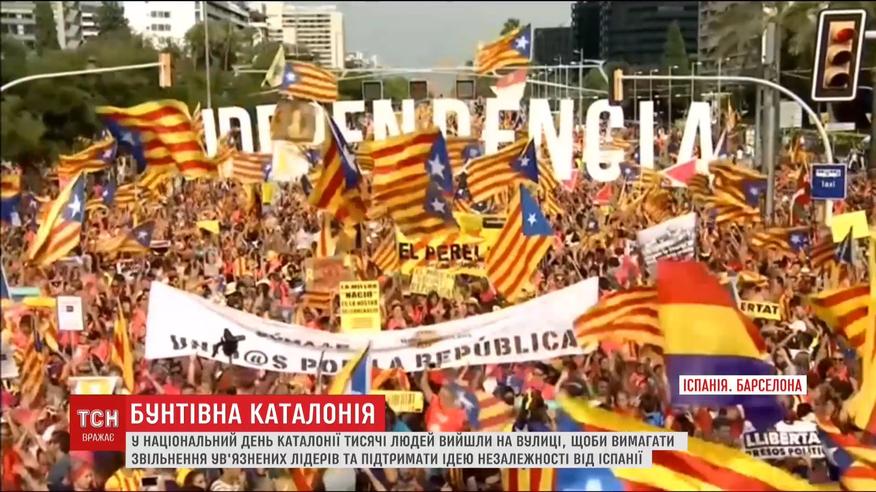 Вечером на улице Барселоны вышли около миллиона человек, от Мадрида требуют права на самоопределение, а еще, освобождения зарешеченных каталонских политиков. Организаторы акции предупреждают: этот протест - только начало, а последний марш может перерасти в постоянную акцию по крайней мере до октября.
