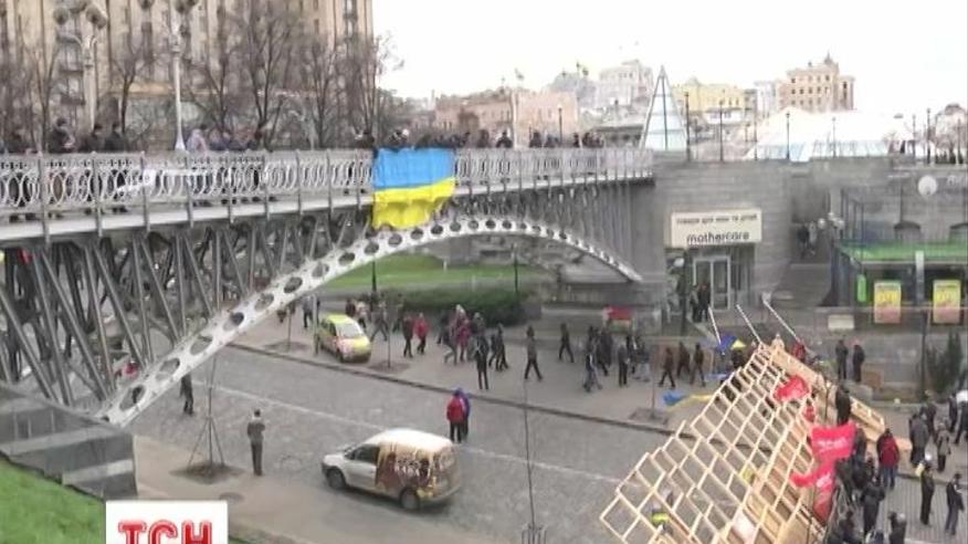 Ячейки евроинтеграционных процессов сделали центр Киева практически пешеходной зоной. В баррикадах улицы, на которых расположены Верховная Рада, Кабинет Министров и Национальный банк, и большая часть Крещатика.
