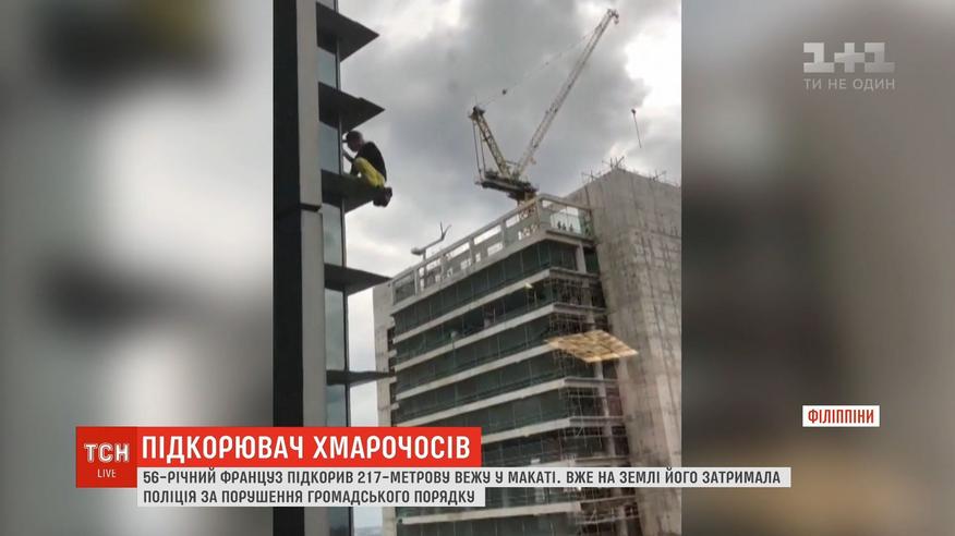 "Человек-паук" в Филиппинах. Француз по стенам и окнам залез на 47-этажное здание