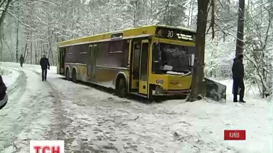 Четверо пассажиров пострадали в столичной Пуще-Водице, когда автобус врезался в дерево