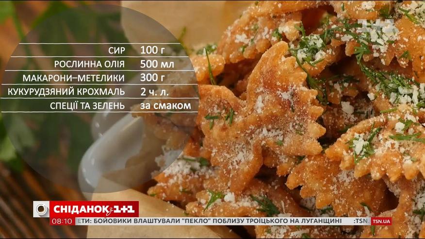 Видов макарон в мире - множество! Сегодня у нас невероятная закуска - чипсы из макарон. Вам понадобится: творог - 100 г, растительное масло - 500 мл, макароны-бабочки - 300 г, кукурузный крахмал - 2 ч. л., специи и зелень - по вкусу.