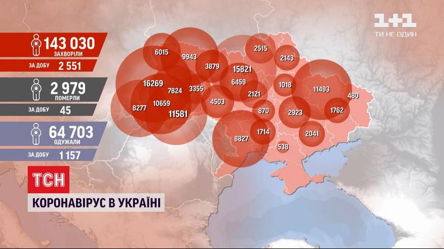Число новых случаев коронавируса в Украине снова пошло вверх. За прошлые сутки их более 2,5 тысячи. Болезнь унесла 45 жизней. 1157 больных выздоровели. С начала эпидемии COVID-19 заболели более 143 тысяч украинцев..