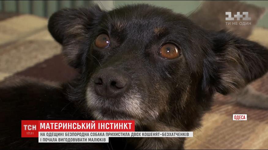 Чудеса природы: в Одесской области дворняга выкормила двух бездомных котят