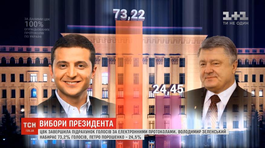 Владимир Зеленский набирает чуть более 73% народных симпатий. Петр Порошенко - почти 25%. Окончательные результаты выборов президента должны объявить после того, как ЦИК примет и обработает все протоколы в бумажном виде. Сделать это планируют в начале следующей недели.