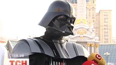 Один из главных героев "Звездных войн" сегодня на Майдане Независимости раздавал всем желающим бесплатные билеты на свой космический корабль.