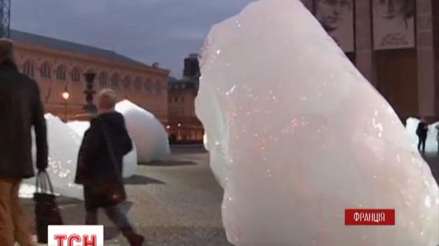 Огромные глыбы льда выловили у побережья Гренландии и в специальных контейнерах доставили во французскую столицу.