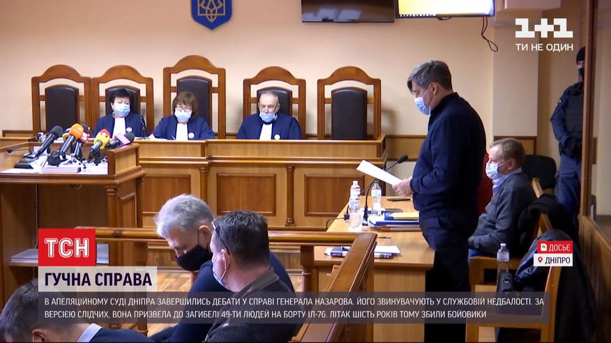 Судебные прения по делу сбитого Ил-76 завершились в Днепре. Но надежды родственников погибших услышать решение апелляционного суда так и не оправдались. Суд объявил очередной перерыв. Поэтому последнее слово обвиняемый Виктор Назаров должен взять 9 декабря, и только после этого судьи пойдут в совещательную комнату. Генерал Виктор Назаров обвиняется в служебной халатности, приведшей к гибели людей. 14 июня 2014 года боевики сбили самолет, что доставлял десантников в луганский аэропорт.