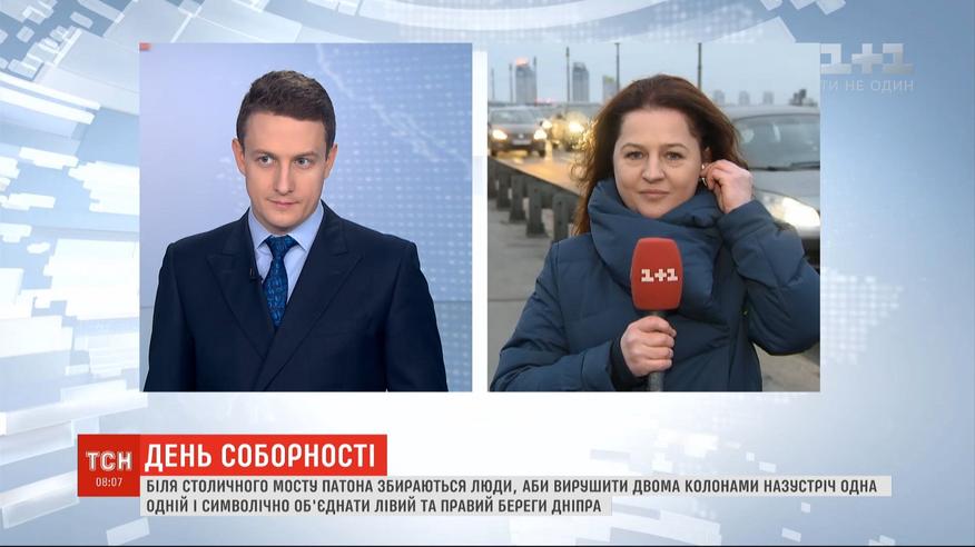 Сегодня Украина отмечает День Соборности. Именно 22 января - 101 год назад - об объединении объявили украинском и Западно Народные Республики. И именно сейчас с обеих сторон столичного моста Патона собираются люди. Они должны отправиться мостом двумя колоннами навстречу друг другу, чтобы символически объединить левый и правый берега Днепра.