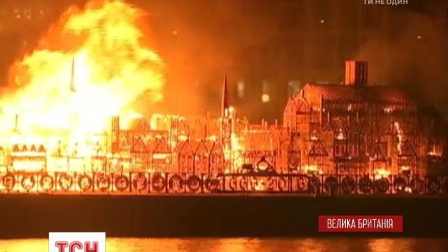 120-метровую реплику средневекового города построили на набережной Темзы. Посмотреть на сожжение деревянных домиков и башен пришли несколько тысяч местных жителей. По замыслу американского художника, огонь должен напомнить британцам о трагедии, произошедшей 350 лет назад, когда из-за огня в небольшой пекарне занялся весь город.