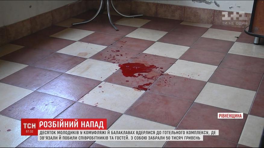 Разбойное нападение на Ровенщине. Десяток молодых в балаклавах ворвались в гостинично-ресторанный комплекс вдоль трассы Киев-Чоп. Люди в камуфляже, вооруженные автоматами, забежали в заведение, где на тот момент находились сотрудники и двое гостей. Им связали руки и начали бить. Из отеля вынесли 50 тысяч гривен.
