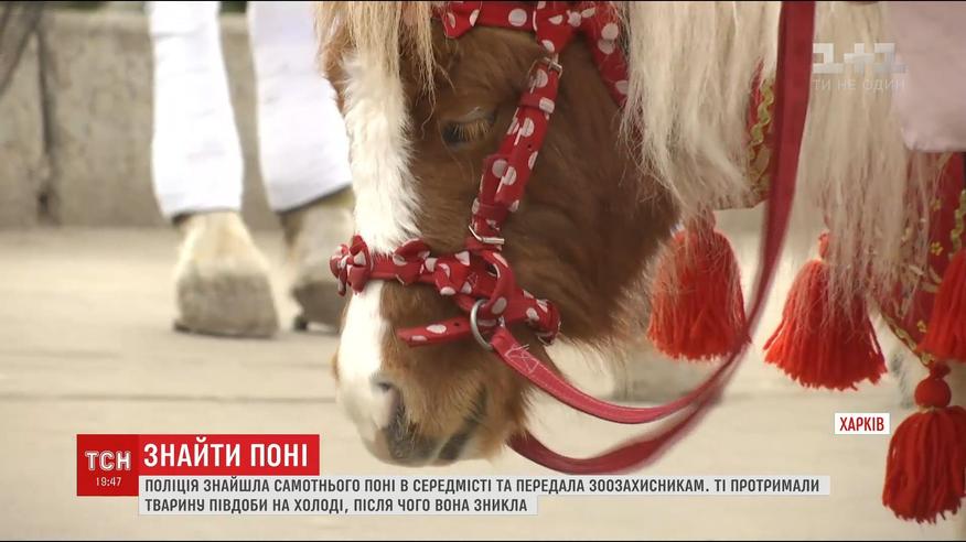 Бесхозного пони полиция нашла среди рождественского городка на Площади Свободы. Животное патрульные передали зоозащитникам. Те полсуток продержали пони на холоде, где его заметила студентка-ветеринар. Пока она спорила с волонтерами, пони загадочно исчез.