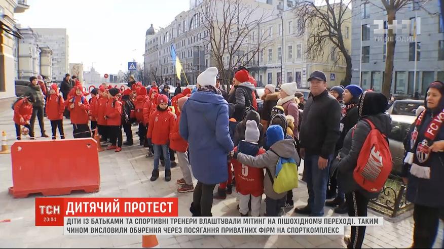 В Киеве дети-воспитанники спорткомплекса "Восход" устроили митинг на пешеходном переходе