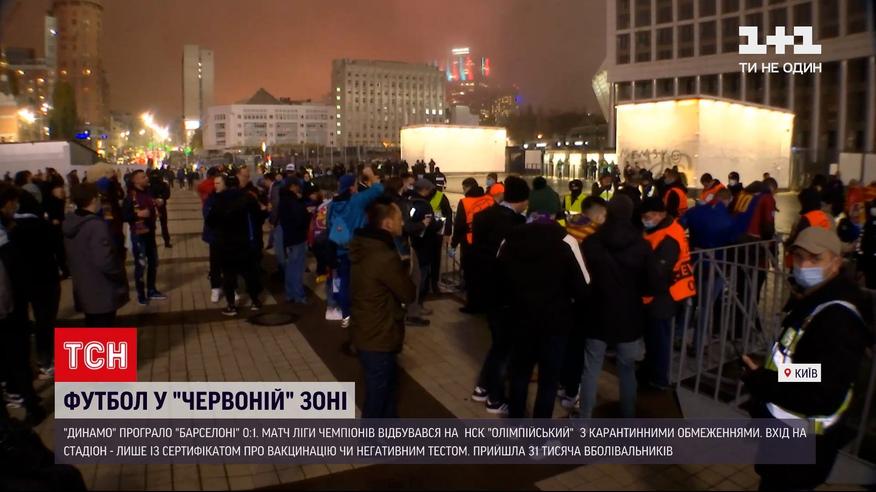 Киевское "Динамо" в столице принимало испанскую "Барселону". Посмотреть на этот матч Лиги чемпионов собралось чуть больше 31 тысяч зрителей. И им, чтобы попасть на стадион "Олимпийский", пришлось показывать сертификат о вакцинации, или негативный ПЦР-тест. У всех ли болельщиков были документы и удалось ли динамовцам хотя бы забить свой первый гол в нынешней группе Лиги чемпионов - об этом дальше в сюжете.